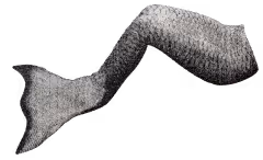 A half-tone print of a hand with long nails holding a pair of vintage scissors.